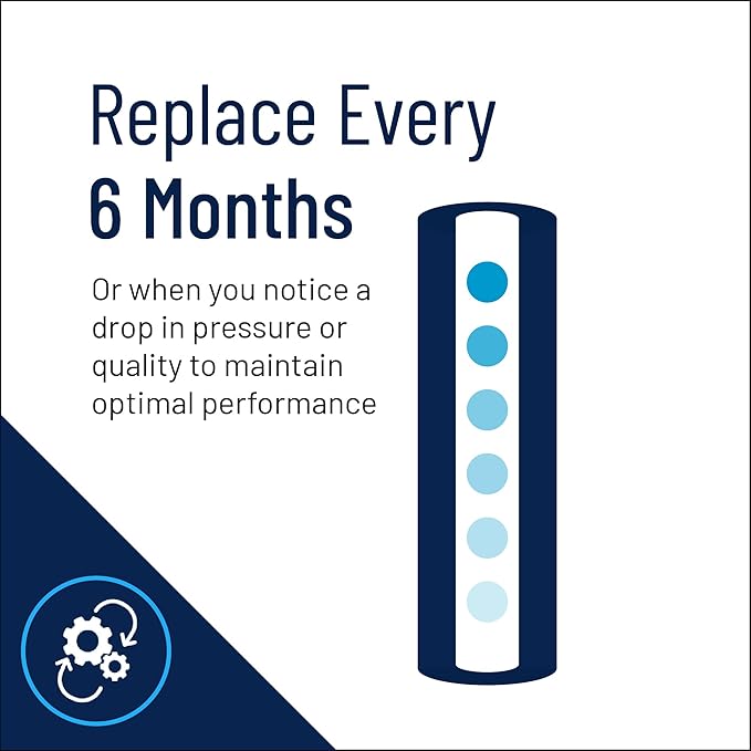 - REPLACE EVERY 6 MONTHS or when you notice a drop in water pressure or quality. The cap is color-coded for easy replacement