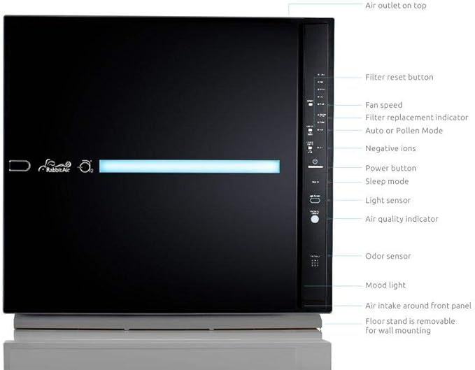 Rabbit Air, MinusA2 Air Purifiers for Home, Ultra Quiet HEPA Air Purifier - Wall Mountable Air Purifiers for Home Large Room, Allergies, Dust, Mold, Smoke & VOCs - (SPA-780A, Black, Germ Defense)