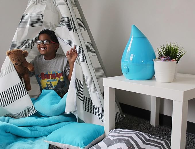 - LARGE ROOM HUMIDIFIER: The Crane Drop Ultrasonic Humidifier features an easy-to-clean, detachable tank that holds one gallon of water to humidify bedroom, nursery, or indoor spaces up to 500 square feet for 24 hours