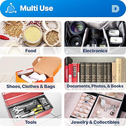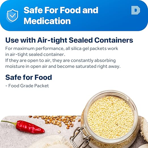 - [How To Use] Place your items and silica gel packets in a tightly sealed container to protect your items from moisture damage; Use silica gel packs to protect 3D Filaments, Safes, Guns, Ammos, Canister, Collectables, Jewelry, Documents, Camera Lens, Clothes, Cosmetics, Books, Bags, Decorations, Wet phones, Cameras, Watches, Electronics, Shoes, and Many Other Valuables