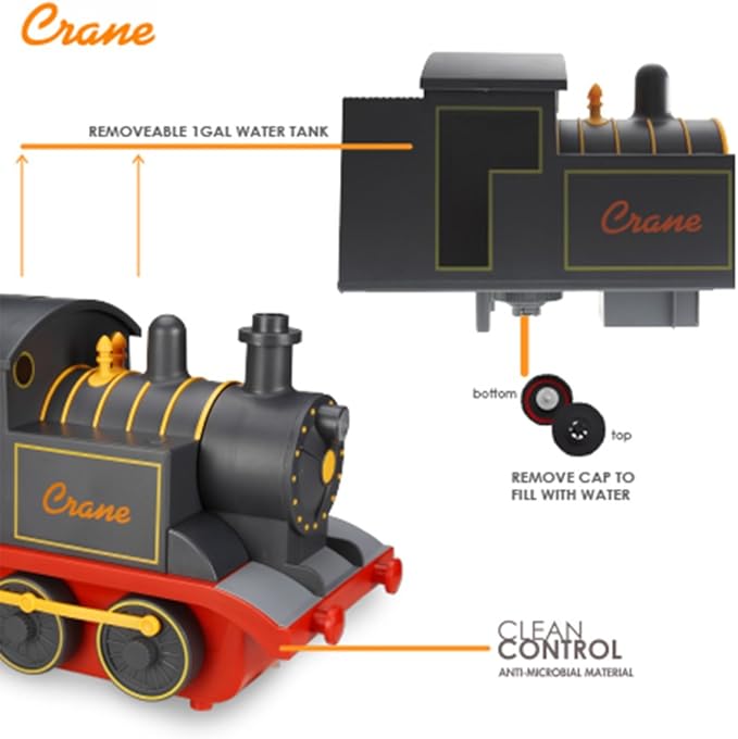 Crane Cool Mist Ultrasonic Baby Humidifier for Nursery and Kids Room, Auto Shut Off 1 Gallon, Optional Filter, Playful Design, Train