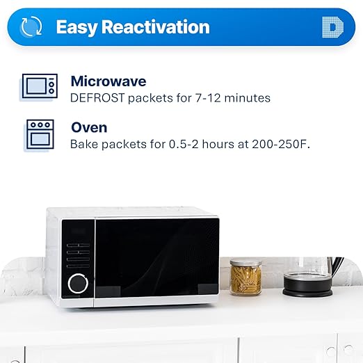 - [Ultimate Moisture Absorption and Reactivation] Packet material is high quality coated paper for Ultimate Moisture Absorption and Heat Resistance for Reuse (Place in the Oven for 0.5 to 2 hours at 200 to 250F or Microwave for About 7 to 12 Minutes at Defrost Mode)