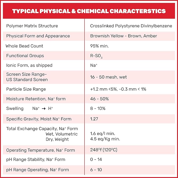 - 1.5 Cubic Feet of Resin Cation Premium Grade Softening Resin Strong Acid Cation Exchange Resin. Designed to extend softener life, reduce Hard Water build-up and to ensure soft pure water.