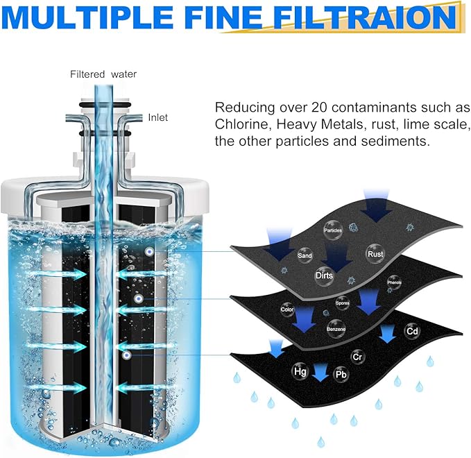 - Performance: Using multi-stage filtration technology and high-grade coconut shell carbon block that would helps to remove Chlorine, THM, VOCs, cadmium, chromium, copper, and all other major impuritiesfor effective water filtration. GOLDED ICEPURE is an expert on designing retain minerals beneficial to the human body.