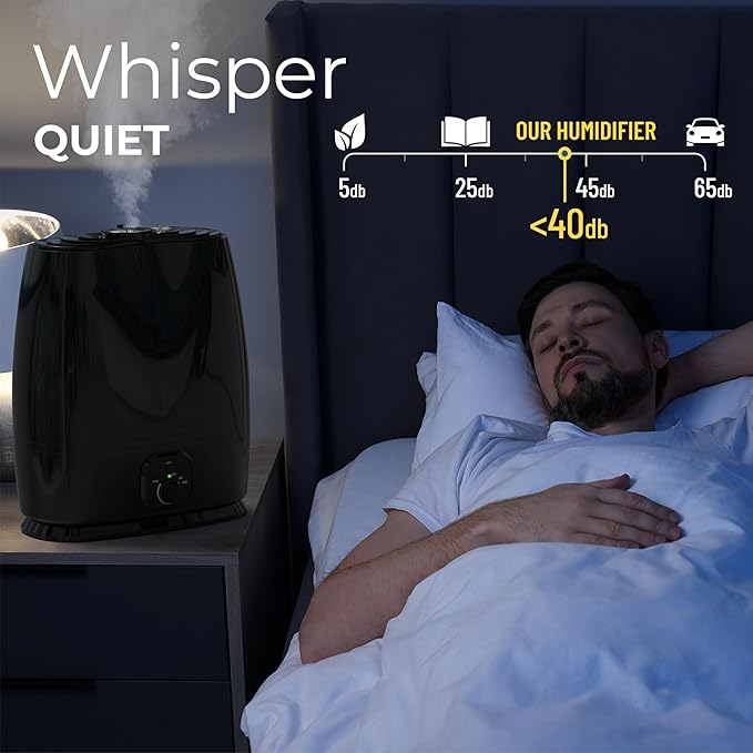 - LARGE ROOM HUMIDIFIERS FOR HOME: Our cool mist humidifier covers up to 500 sq ft with an ultra-silent design, ensuring a quiet and comfortable environment, great for large or small bedrooms; so quiet, an ideal humidifiers for bedroom comfort