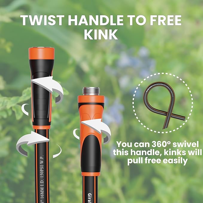 - Using Suggestion: To minimise kinking, please smooth out the water hose before use and avoid using it in a tangled state. And if your hose is kinked, please rotate swivel handle to recover it.