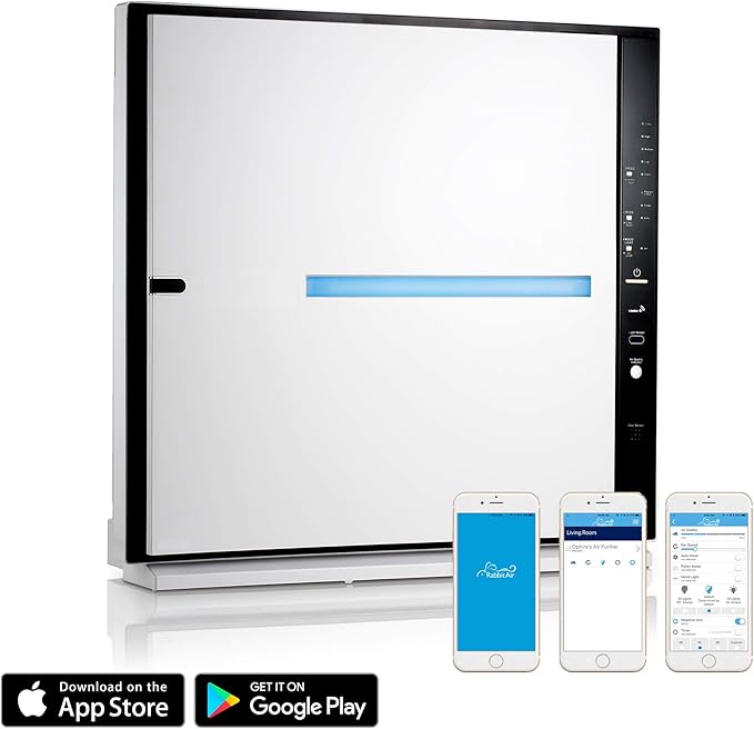 - SMART APP CONTROL: Connect to your WiFi network and control your air purifier from anywhere with the Rabbit Air App. This air purifiers for home effectively captures airborne particles, including dust, mold, and allergens, making it perfect for improving air quality in your home. Ideal for homes with pets or allergies, it works as an air purifier dust filter to maintain a fresher, healthier living space. Stay in control and enjoy cleaner air with ease.