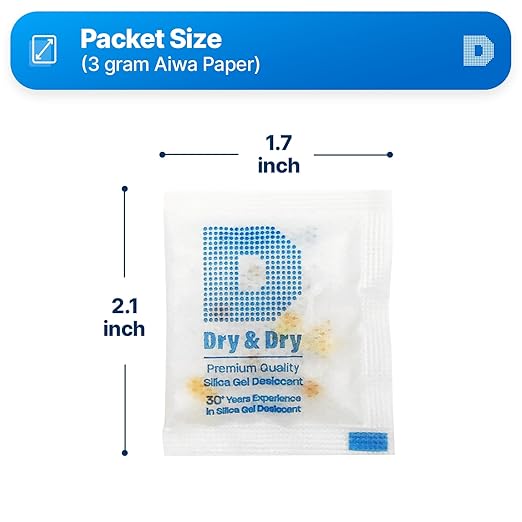 - [Packet Specification] (Packet dimension: 1.3 inch x 2.4 inch); 3 gram desiccant packets can cover approximately 360 cubic inch volume containers; We recommend placing more packets than recommended for extra protection