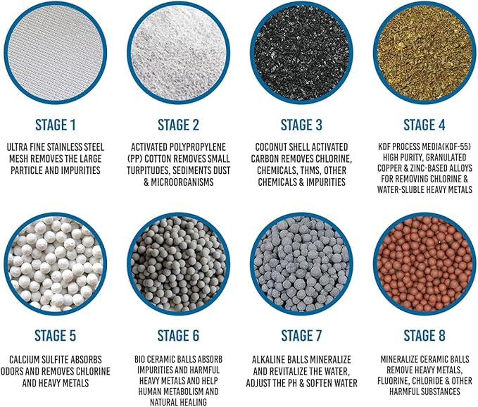 - Multi-Stage Filtration: These shower filters to remove chlorine and heavy metals have 15 distinct filters water passes through. This filtering process allows only the cleanest and purest pH balanced water to flow from the shower head water filter.
