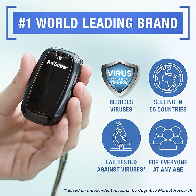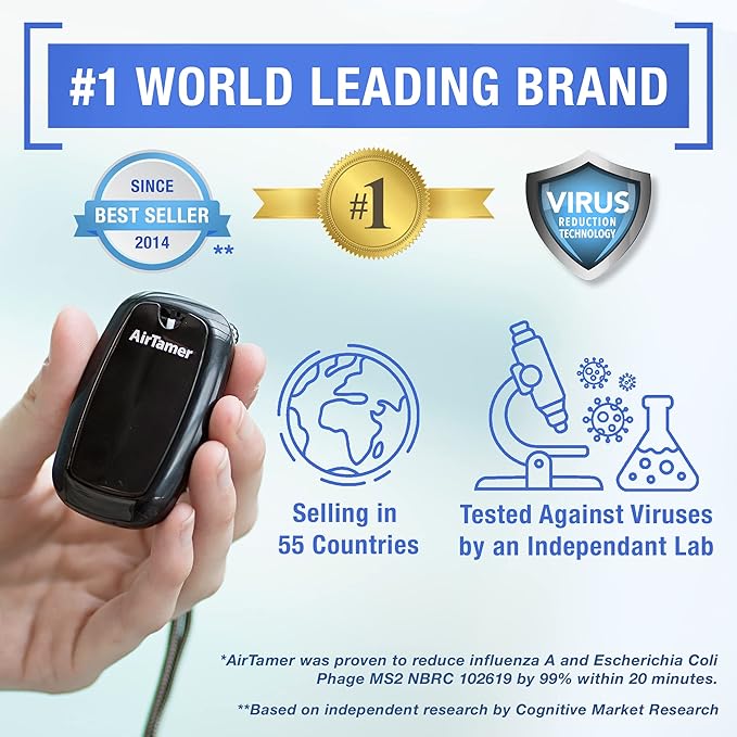 - GREAT FOR TRAVEL: The AirTamer A315 is the perfect travel accessory for those who love to explore without exposure to unsanitary air; The A315's SMALL POWERFUL design includes a built-in pocket clip and patented conductive REPLACEABLE lanyard which is adjustable and features a break-away connector for extra safety; Wear it around your neck or clip it on your jacket and have a sphere of breathable clean air anywhere you go