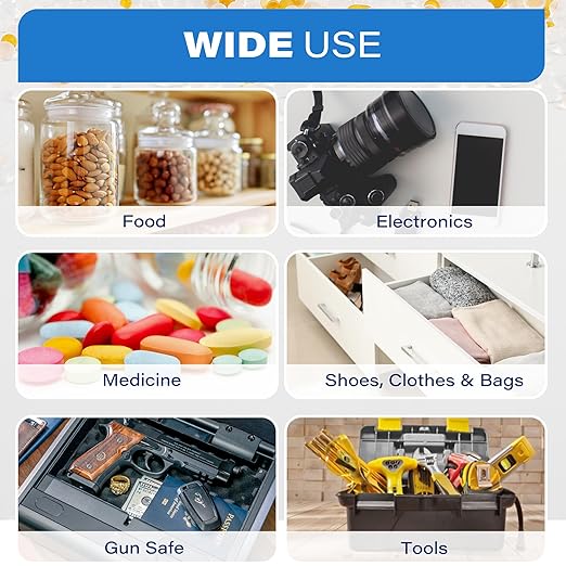 - 【INDICATING DESICCANTS】Our silica gel desiccant bags contain orange indicating beads that enables users to quickly determine when desiccant needs to be recharged or replaced, the orange crystals changing color to blackish green when they become saturated with moisture