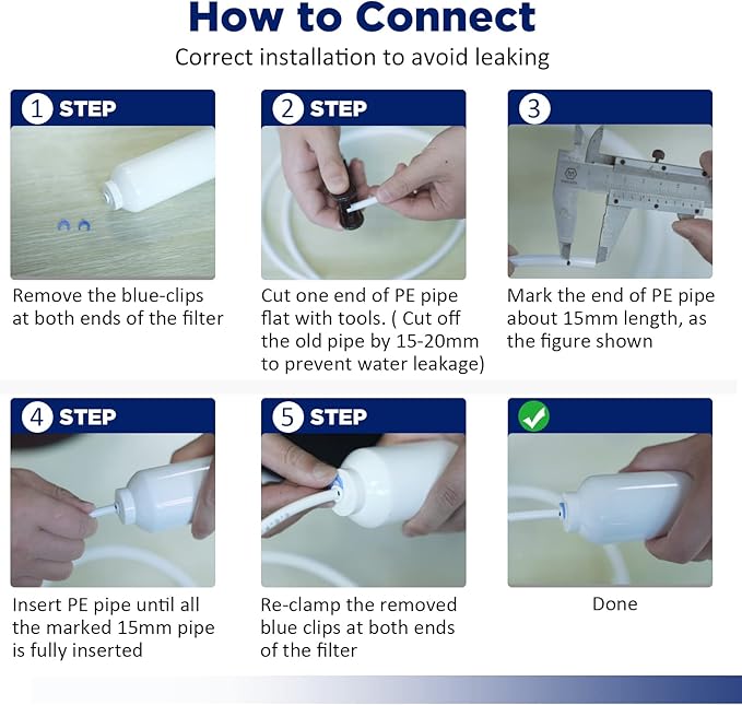 - EASY INSTALLATION – Comes with built-in 1/4-inch quick-connect fittings. Simply push the tubing in, no tools needed. Be sure to follow the flow direction (inlet/outlet).