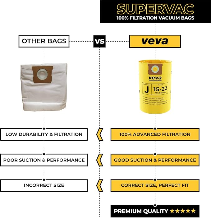 - GREAT FIT – Type J 15-22 Gallon High Efficiency Bags Work with standard 15-22 Gallon Vacs, Part 90673 and 9067300. Not compatible with Ridgid Vacuum.