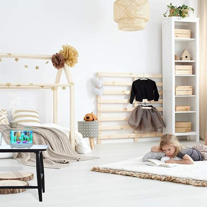 - 【Warm Night Light】 The ACEBON Personal Mist Humidifier includes 7 colours warm LED lamp. it will automatically changing colored and create a sweet and comfortable environment for your kids.