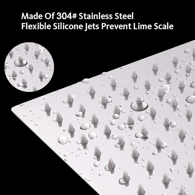 - Extra-Large Rainfall Shower Head:Extra-large 10 Inches with 121 high pressure silicon nozzles and 360 degree rotation stainless steel shower head, surface Chrome Finished, stylish and beautiful. Let you and your family enjoy amazing bathing every day
