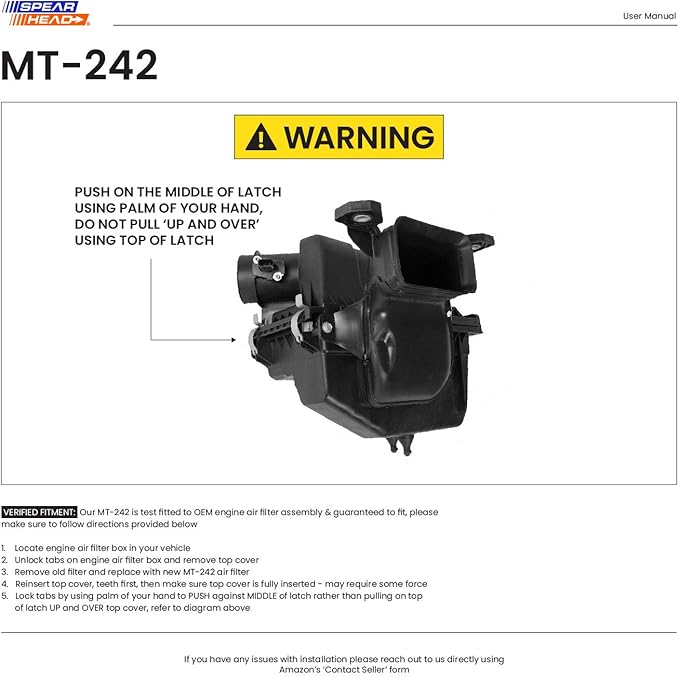 Spearhead MPG Defense Max Thrust Engine Air Filter For All Mileage Vehicles, Fits Like OEM, Restores MPG & Acceleration (MT-242)
