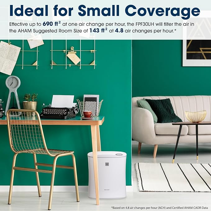 SHARP Air Purifier with True HEPA filter. Covers up to 690 sq. ft. for Small Rooms, such as Bedroom, Office or Dorm Room, for Dust, Smoke, and Pollen. FPF30UH