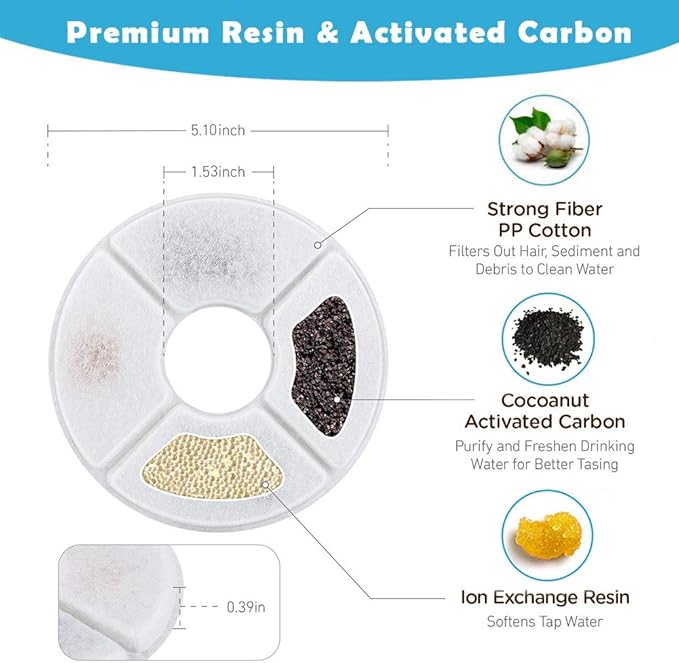 - Product Benefits : Filtering hair and heavy metals while improving water taste, promoting increased water consumption and reducing urinary tract infection risk for pets. Filtering hair and heavy metals while improving water taste, promoting increased water consumption and reducing urinary t… See more