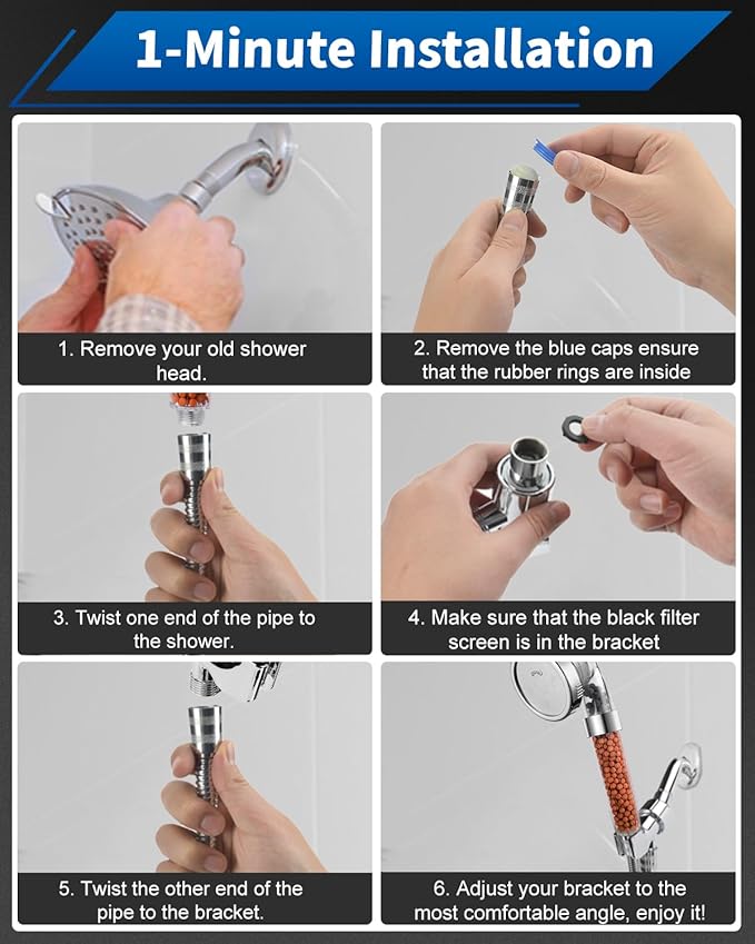 - Tools Free Installation: Luxsego shower head with filter beads, hose, bracket and all accessories you need are in an eco-friendly kraft paper box. No plumber and tools needed. With the simple and clear installation guide, you can quickly install it in 1 minute as easily as screwing in a bulb even if you don’t have any install exprience