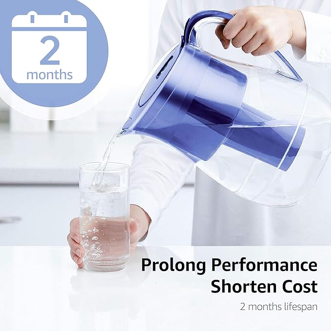 - [Extended lifespan] The Overbest pitcher water filter can provide a long service life. To maintain its effectiveness, consider replacing it every 2 months or after filtering 60 gallons of water, which will vary based on actual water condition.