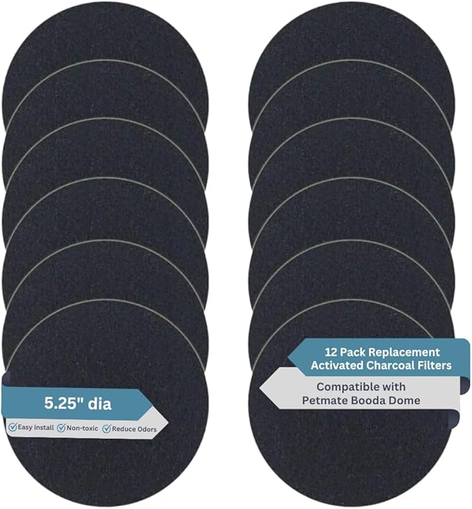 12-Pack Activated Carbon Litter Box Filters - Premium Pre Cut Cat Litter Filters Replacement - Compatible with PetMate Booda Dome Covered Box, Biodegradeable and Made in USA