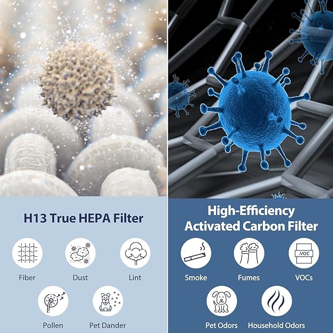 - 【3-Stage Filtration System】vital 100 replacement filter is adopted the 3-in-1 HEPA Filtration System, which effectively attaches at least 99.97% of airborne things as small as 0.3 microns in the air, such as dust, smoke, pollen, hair, and Odor.