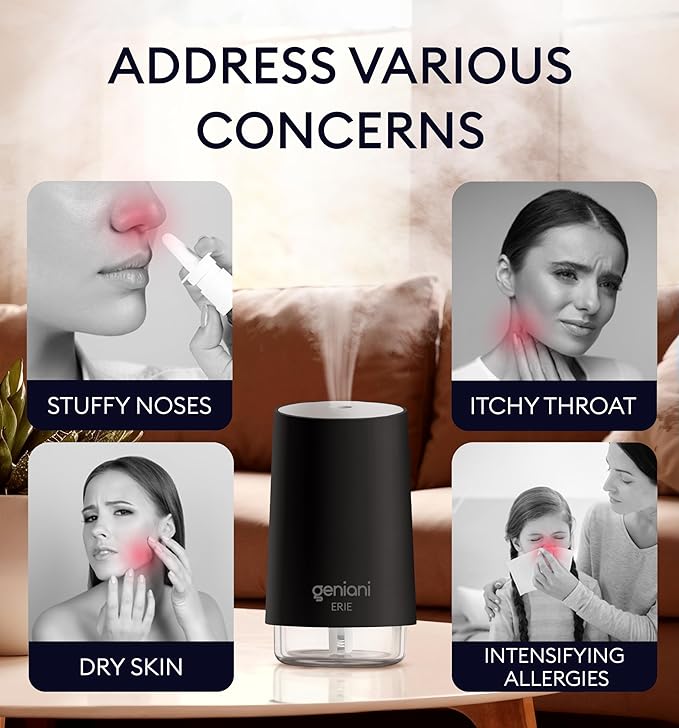GENIANI Portable Small Cool Mist Humidifier β USB Powered (Not Rechargeable), Compact Desktop Humidifier for Plants, Office, Baby Room β Auto Shut Off & Night Light β Black, 0.25L