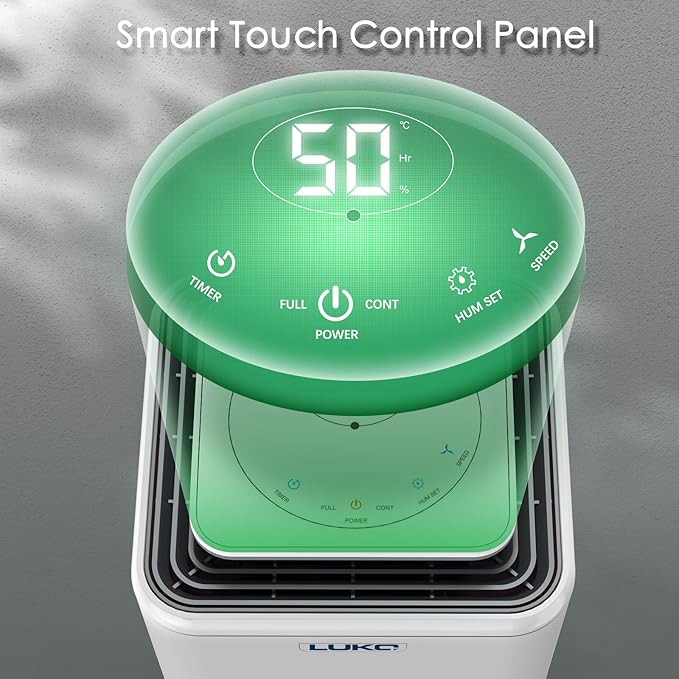 - 【Humidity Real-Time Intelligent Control】Simple to use! Our home dehumidifier has a adjustable electronic control panel with LED digital display, it can provide an accurate humidity level readout and automatic humidity control. Adjust to your ideal moisture setting (30%-80%). It will intelligently perceive any rooms humidity level and control dehumidification. Meanwhile, it is also equipped with an intelligent 3-color humidity level display lights: Red (20%-49%), Blue (50%-67%), Green (68%-81%).