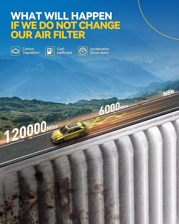 - [Note]: The real thing is based on the first picture, Check if the air filter matches your vehicle by using the fit filter box and we recommend changing your air filter every 10000-12000 miles, or 5000-6000 miles if always driving in dusty or damp conditions