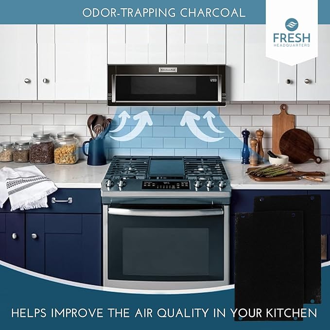 - ADVANCED ODOR ELIMINATION: Activated carbon filter technology actively absorbs and neutralizes stubborn cooking odors from frying, grilling, and strong spices, keeping your kitchen air fresh and inviting. The high-grade activated charcoal contains millions of microscopic pores that trap odor molecules at the source, effectively eliminating fish smells, bacon grease, garlic, onions, and other persistent cooking aromas before they spread throughout your home and linger in fabrics and furniture.