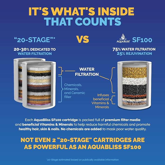 - Look & Feel Your Best - Because we leverage the purest, premium, most potent materials, you'll get the absolute best from every shower. And when you invest in the best, you look your best. So go ahead, click add to cart. Replace your Aquabliss SF100 with the upgraded power of this SFC100 shower filter head replacement cartridge, and love the results.