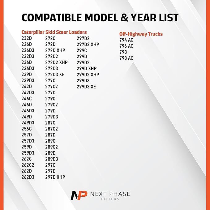 - Compatible Devices : Caterpillar Skid Steer Loaders 232D, 226D, 226D3, 232D3, 236D, 236D3, 239D, 239D3, 242D, 242D3, 246C, 246D, 246D3, 249D, 249D3, 256C, 257D, 257D3, 259D, 259D3, 262C, 262C2, 262D, 262D3, 272C, 272D, 272D XHP, 272D2, 272D2 XHP, 272D3, 272D3 XE, 277C, 277C2, 277D, 279C, 279C2, 279D, 279D3, 287C, 287C2, 287D, 289C, 289C2, 289D, 289D3, 297C, 297D, 297D XHP, 297D2, 297D2 XHP, 299C, 299D, 299D2, 299D XHP, 299D2 XHP, 299D3 & 299D3 XE, Off-Highway Trucks 794 AC, 796 AC, 798 & 798 AC Caterpillar Skid Steer Loaders 232D, 226D, 226D3, 232D3, 236D, 236D3, 239D, 239D3, 242D, 242D3, 246C, 246D, 246D3, 249D, 249D3, 256C, 257D,… See more