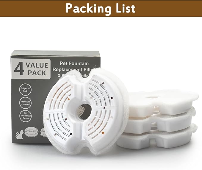 - 【Premium 4 Pack】4-pack of premium pet fountain replacement filters, individually packaged and sealed to maintain high quality.