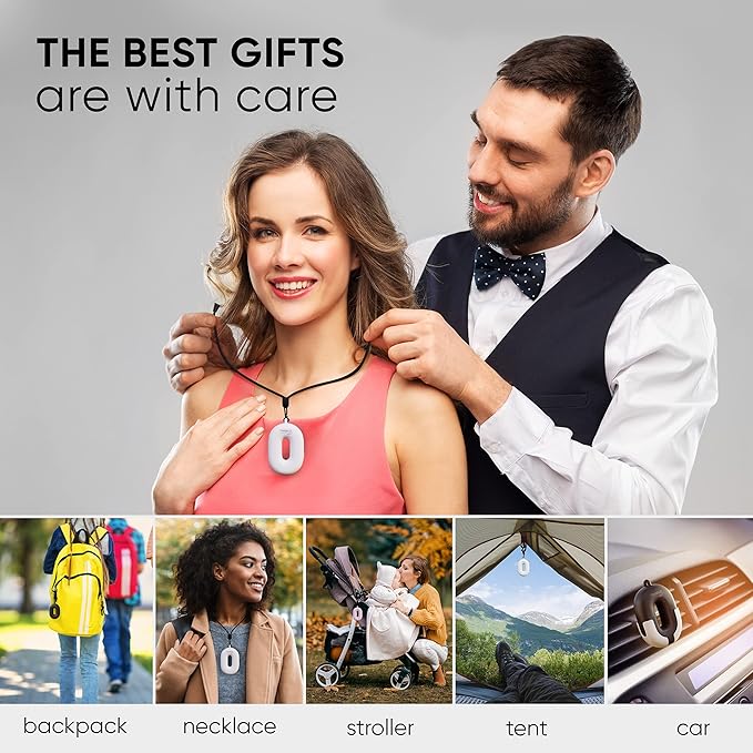 Wearable Air Purifier Necklace - Portable Personal Ionizer - Rechargeable Travel-Size Air Cleaner - Removes Dust Allergen Odor Viruses Bacteria - Use in Office Airplane Train Bus - For Kids and Family