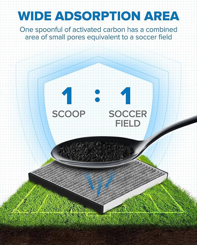 - Enjoy Fresh Air: Activated carbon cabin air filter quickly adsorbs unpleasant odors from outside the ventilation system, provides a more comfortable interior environment for the driver and passengers without adding chemical odor neutralizer