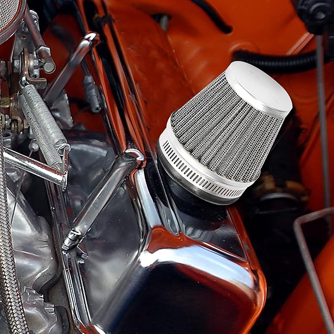 - Our product are double layer stainless steel mesh filters the mushroom heads, which are suitable for models with different engine compartment , increase the intake air flow, filter air dust, and make your engine breathe more smoothly.