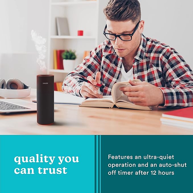 Homedics Portable Humidifier - Small Air Humidifiers for Bedroom, Plants, Office, Travel - Cool Mist Humidifiers, Color-Changing Accent Light, 2 Mist Settings, Black