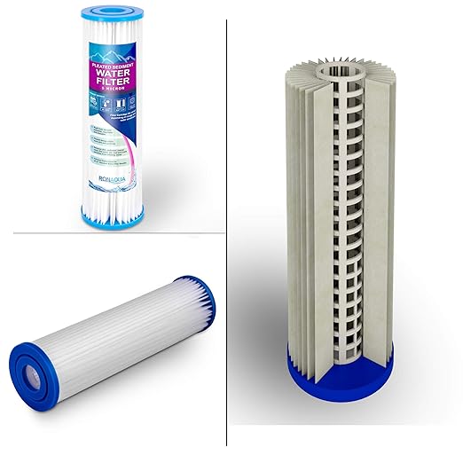 - š DURABLE STRUCTURE: 10ā Transparent Standard Housing is proper for heavy sediment applications. The housing body is made of reinforced polypropylene for strength and resistance to chemicals, and the blue cap is made of high-flow polypropylene for toughness. The cap has 3/4" inlet / outlet brass ports which allowed better sealed connections to the corresponding pipes. 10ā Standard 5 Micron Pleated Sediment Filters Used for effectively removing most sediments from water