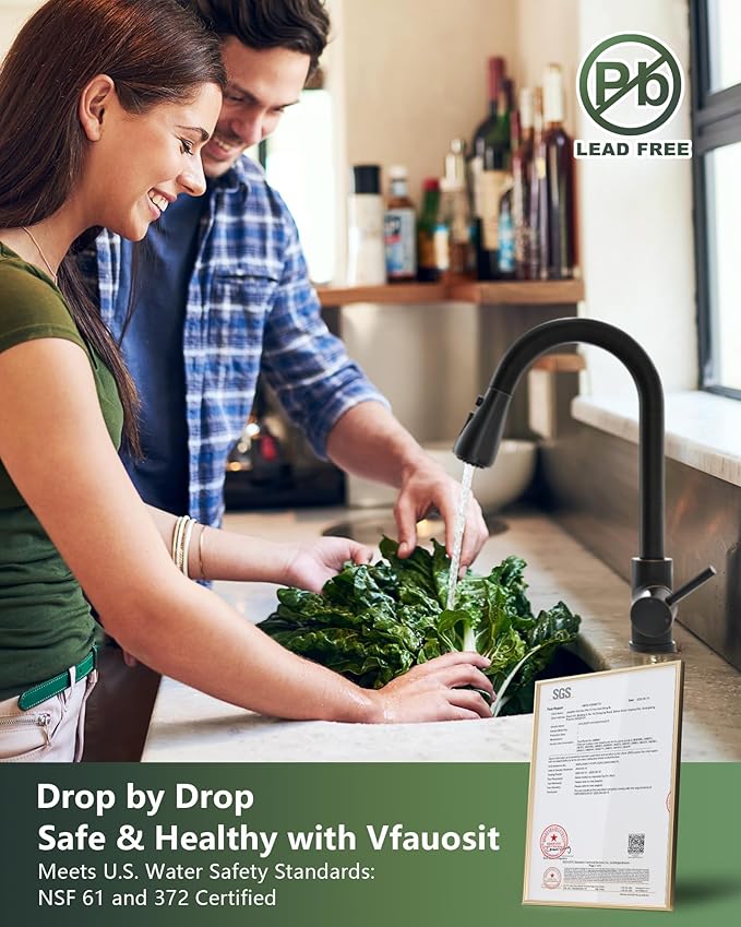 - A perfect fit: Your black kitchen faucet with sprayer fits for almost all kitchen sinks, such as a bar sink faucet, camper kitchen faucet or laundry sink faucet. A perfect way to upgrade your kitchen!