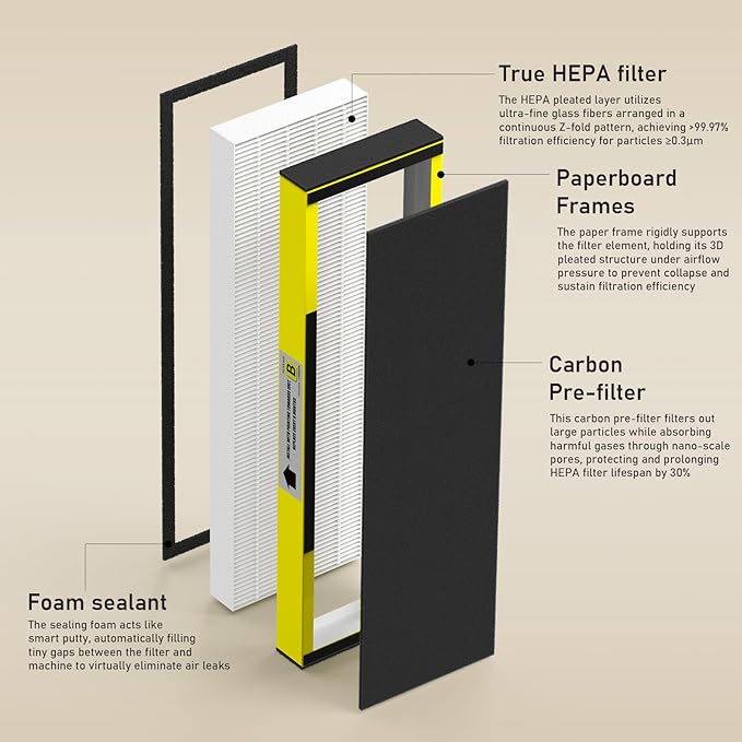 - Package includes 4 x H13 True HEPA Filter and 10 x Activated Carbon Filter. Maintaining optimal air quality in your home or office is crucial for your health and well-being. That's why it's essential to replace the filters in your regularly. We recommend replacing the HEPA filter every 6-8 months and the pre-filter every 2-3 months for optimal performance