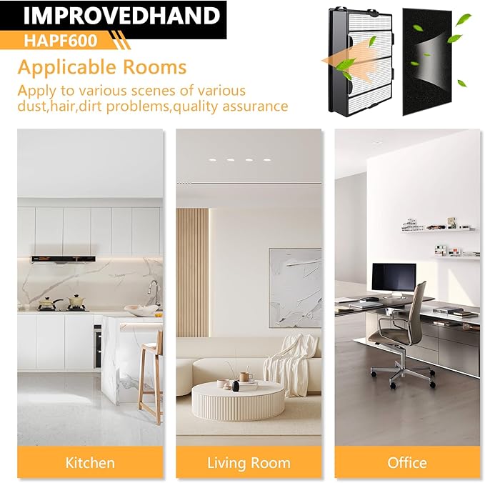 - HIGH EFFICIENCY: Improvedhand hapf600 filter replacement for holmes use the latest HEPA filtraton technology and activated carbon filters featured a multi-layered purification defense to bring a better filtration effect that capture dust in a quick second, which helps improve airflow a lot so you enjoy fresh and pure air with every breath