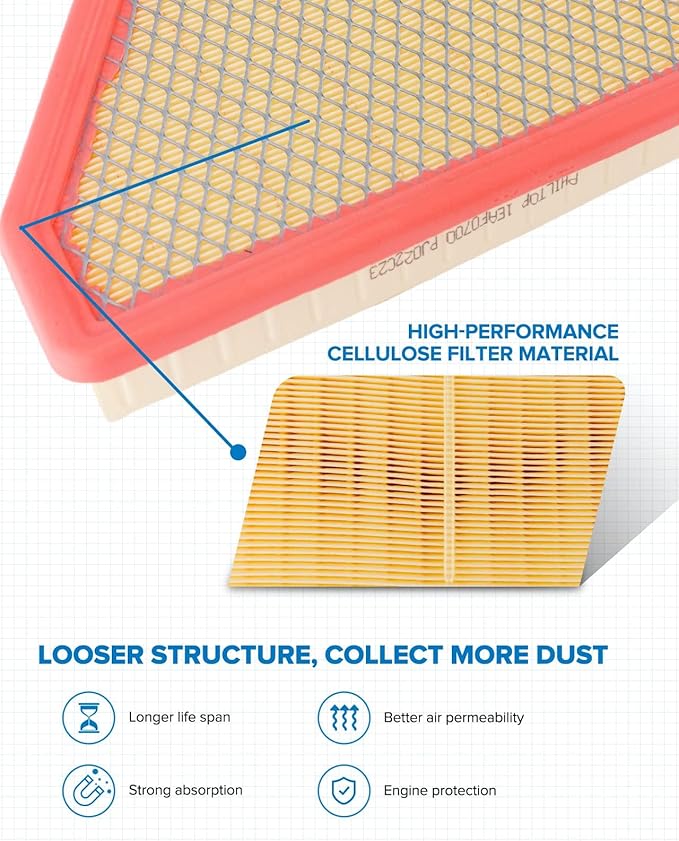 - [Improved Fuel Economy]: Cleaner intake air improves the efficiency of the fuel combustion process, which improves fuel economy and reduces emissions. A well-maintained air filter is critical to environmental protection and economical driving