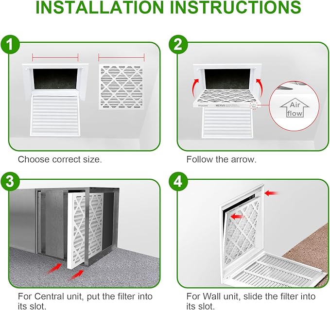 - MERV 8 Efficiency for Cleaner Air: Rated MERV 8 (Equivalent to MPR 600/FPR 5). Anycore air filter 12x12x1 captures up to 90% of airborne particles without restricting airflow. Engineered with high-density filtration media to balance performance and system protection.