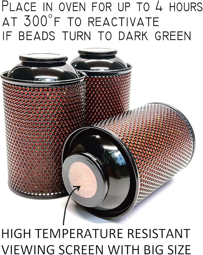 - Black canister won't rust and the orange silica gel desiccant not contain Cobalt II Chloride