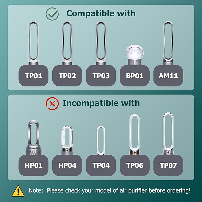 - Compatible Air Purifier Models : Dyson AM11, Dyson BP01, Dyson TP01, Dyson TP02, Dyson TP03