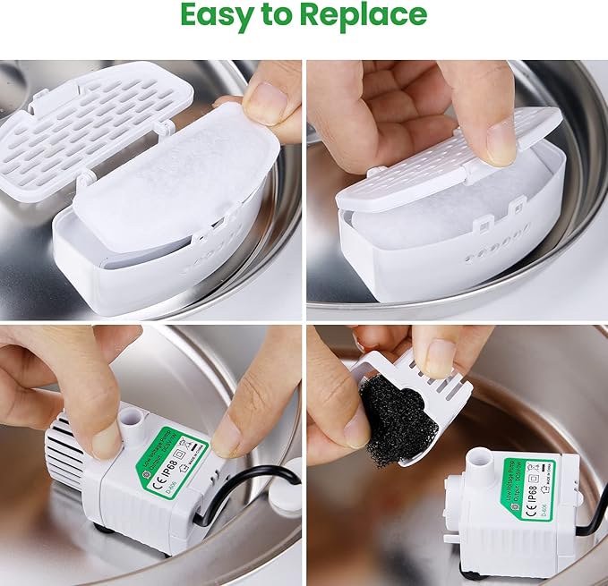 - Replace Regularly: Suggest replacing cat fountain filters and sponges every 2 weeks, please change it more often if your water fountain serve multiple pets, can effectively keep water fresh, clean and healthy for your pets, effectively prevent kidney disease