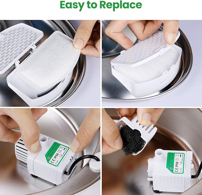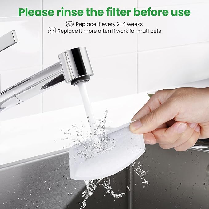 - đăReplace RegularlyăSuggest replacing cat fountain filters and sponges every 2 weeks, please change it more often if your water fountain serve multiple pets, can effectively keep water fresh, clean and healthy for your pets, effectively prevent kidney disease.