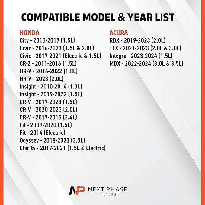 - Pack of 1 Cabin Air Filter Replacement - Compatible with - Various Honda City, Civic, CR-Z, HR-V, Insight, CR-V, Fit, Odyssey, Clarity, Acura RDX, TLX, Integra, MDX. Our cabin filters are designed to fit perfectly in your vehicle. Next Phase NP24201 replaces O.E. 80291TF0E01, 80291TF0405, 80292TF0G01, 80291T5RA01, 80292TBAA11, 80292TF0405, 80291TF3E01, 80292TGLE01; Wix 24201, Fram CF11182, Purolator C36080, Champ CAF1873P.