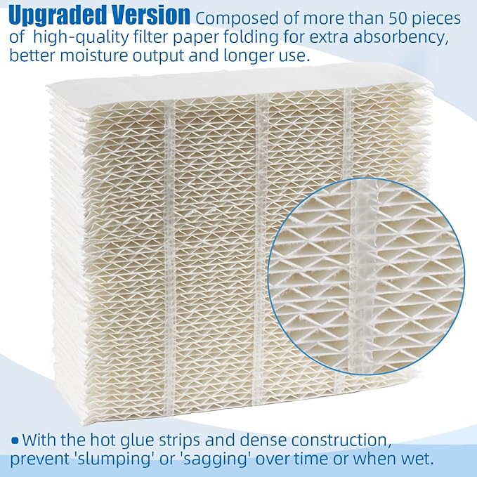 - šš¼š»š“ šš®ššš¶š»š“ šš¶š¹šš²šæ: An evaporative humidifier is only as good as the wick inside it. With the hot glue strips and dense construction, prevent 'slumping' or 'sagging' over time or when wet.