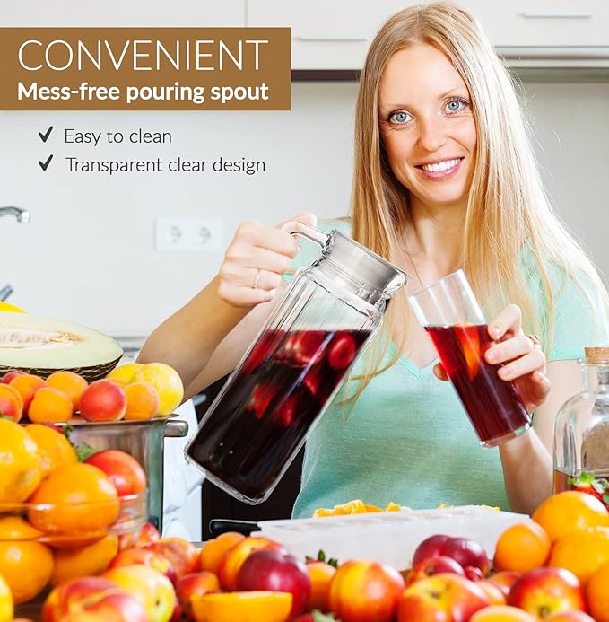 - This set includes 2 x 34oz pitchers perfect for refrigerator or countertops.